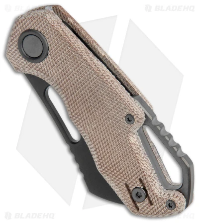 - Natural micarta handle scales over steel liners.