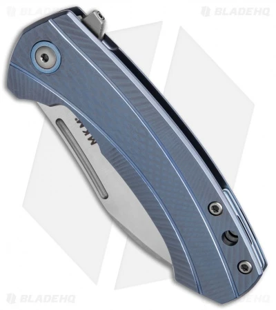 Add a stout and dependable folding knife to your rotation with the Colvera from MKM Knives. This high performance Jesper Voxnaes design is characterized by a 3D machined and blue anodized titanium handle and a stonewashed Bohler M390 steel blade. The titanium frame lock and pocket clip have a matching 3D pattern, providing that sleek EDC style you crave.