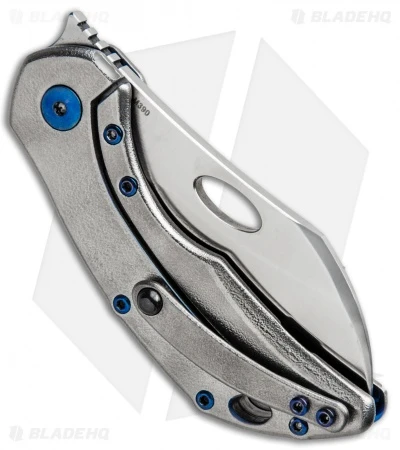- Orange peel titanium handle with blue holes.