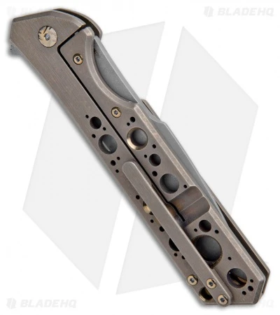 The Rainmaker is another fine flipper from Olamic Cutlery. It showcases the same custom details seen on Wayfarer folding knives, including a caged bearing pivot, titanium frame, and unique material and finish options. This Rainmaker has a Bohler M390 stainless steel harpoon blade, an Acid Rain patterned titanium frame with a bronze Kinetic Rainforest finish, and a titanium clip. Sleek and stylish looks, paired with a build that is first-class, make the Rainmaker a solid purchase.