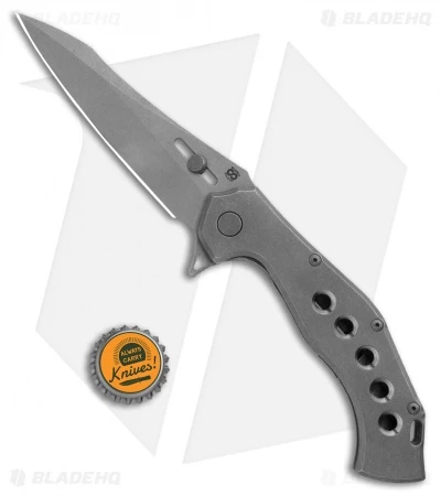 This Soloist exhibits an Agent blade style with a dark-washed finish. The titanium handle has a dark stonewash finish and boasts five stylistic holes.