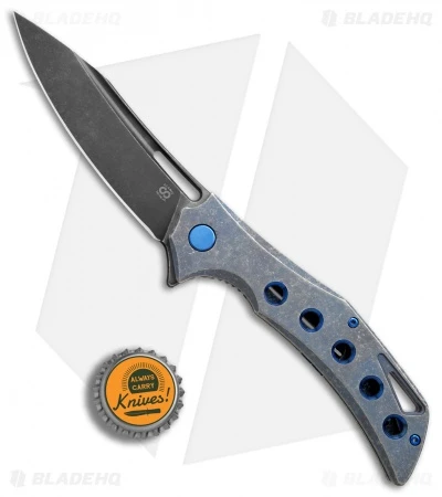 This Swish model features a blue stonewashed titanium handle with a 5 hole pattern and a black PVD stonewashed blade.