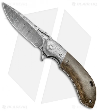 Olamic Cutlery Wayfarer Compact Flipper Knife Green Micarta/HCVD (3.5″ Damascus)