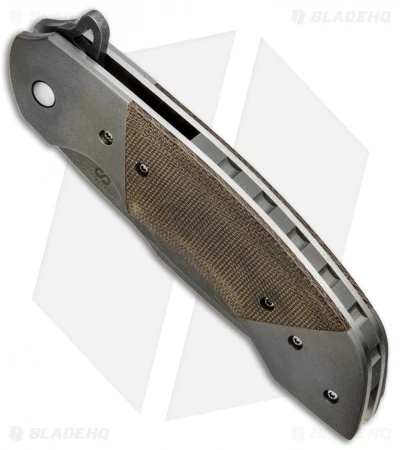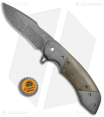 Olamic Cutlery Wayfarer Flipper Knife Micarta/Darkblast Ti (4″ Acidwash) W1056