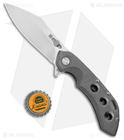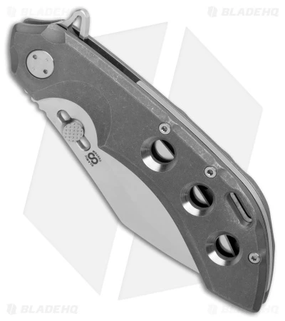 - Stonewashed titanium handle with milled holes and satin-finished accents.
