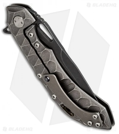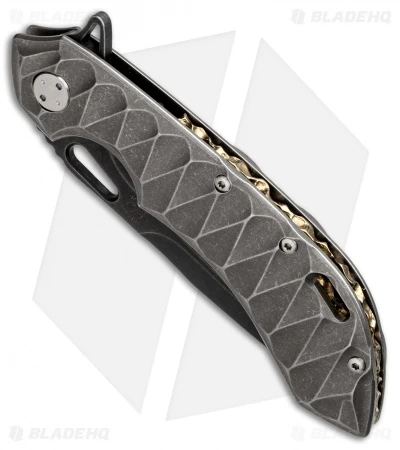 This Wayfarer 247 from Olamic Cutlery is a slim EDC redesign of the popular original with a sculpted titanium handle and a stonewashed black PVD Elmax steel blade. It boasts a caged bearing system, all titanium hardware, hardened stainless lock-bar insert, and a gold anodized sculpted titanium backspacer. The prominent flipper design allows quick deployment with a strong ceramic ball detent. The Wayfarer 247 rests comfortably in your pocket and even better in hand.
