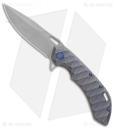 This Wayfarer 247 model sports a bluewashed scalloped titanium handle and a spear point blade in a stonewash finish.