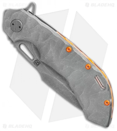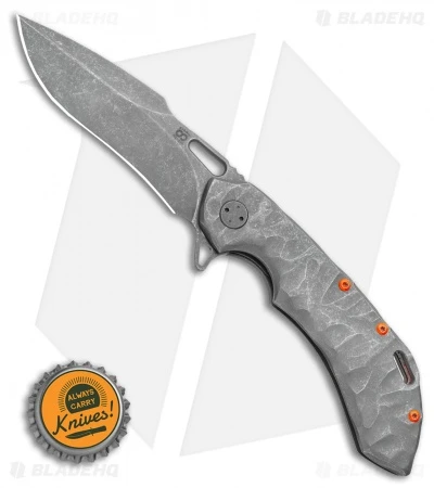his Wayfarer 247 model sports a rock titanium handle with orange hardware and a harpoon blade in an acid stonewash finish.