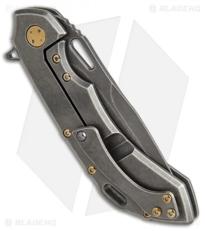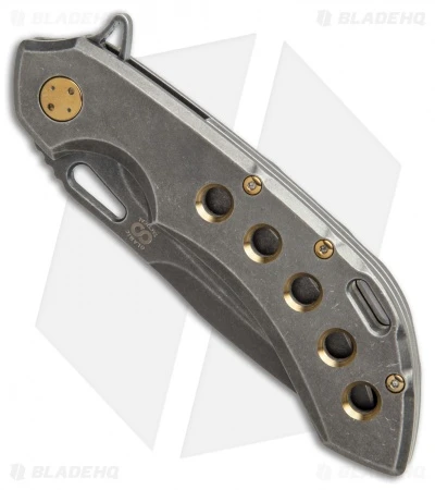 The Wayfarer 247 from Olamic Cutlery is a slim EDC redesign of the popular original. This knife features a PVD stonewash finished titanium handle with a gold anodized hole pattern and a Bohler M390 steel blade with a PVD stonewash finish. It boasts a caged bearing system, gold anodized titanium hardware, hardened stainless lock-bar insert, and an integral floating titanium backspacer. A prominent flipper design allows quick deployment with a strong ceramic ball detent. The Wayfarer 247 rests comfortably in your pocket and even better in hand.