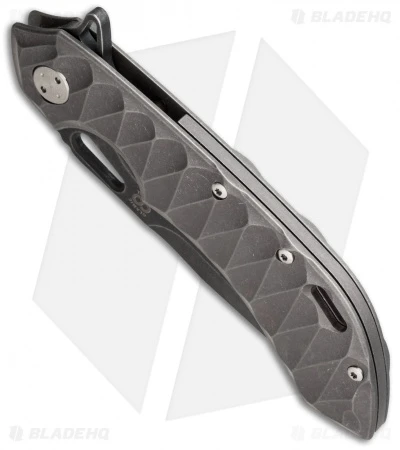 This Wayfarer 247 from Olamic Cutlery is a slim EDC redesign of the popular original with a sculpted bronzed titanium handle and a stonewashed black PVD Elmax steel blade. It boasts a caged bearing system, all titanium hardware, hardened stainless lock-bar insert, and an integral floating titanium backspacer. The prominent flipper design allows quick deployment with a strong ceramic ball detent. The Wayfarer 247 rests comfortably in your pocket and even better in hand.