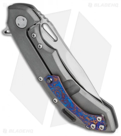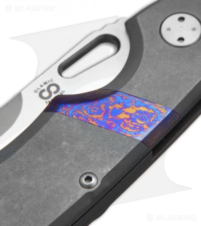 The Wayfarer 247 from Olamic Cutlery is a slim EDC redesign of the popular original. This knife features a titanium handle with a Timascus inlay and an Elmax steel blade with a satin finish. It boasts a caged bearing system, all titanium hardware, hardened stainless lock-bar insert, and an integral floating titanium backspacer. The prominent flipper design allows quick deployment with a strong ceramic ball detent. The Wayfarer 247 rests comfortably in your pocket and even better in hand.