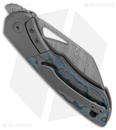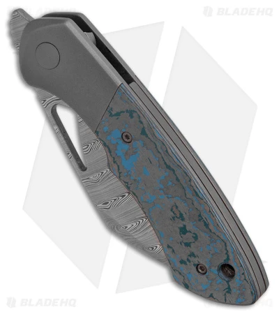 - Dark-blasted titanium handle with Arctic Storm Fat Carbon fiber scales.