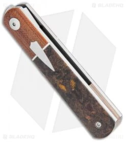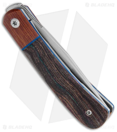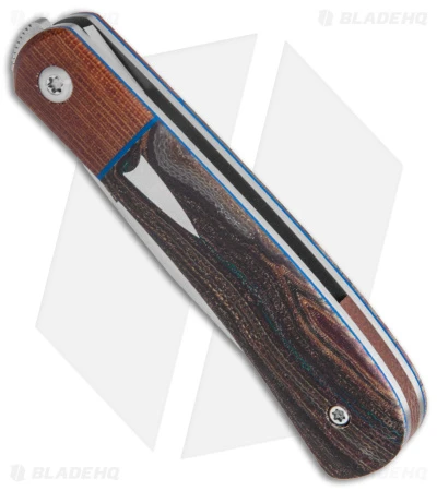 This satin clip point knife is from Blade Show East 2022! It features three kinds of micarta within the handle and functions as a front flipper knife.