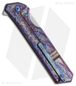 Olamic Cutlery Rainmaker Frame Lock Knife Blue/Purple Holes Ti (4.25″ Satin)