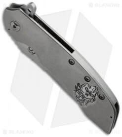 Olamic Cutlery Wayfarer Flipper Knife Full Ti W/Skull (4″ Matte)
