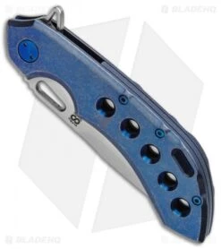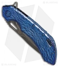 Olamic Wayfarer 247 Knife “Molten” Carved Blue Titanium (3.5″ M390 Black SW)