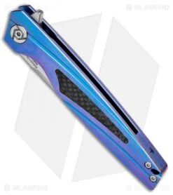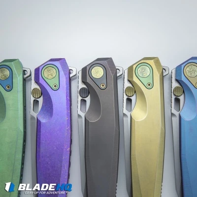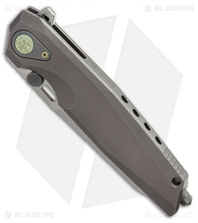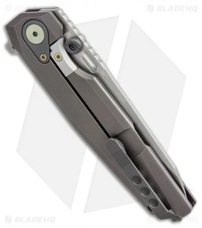 The Thor2 offers solid titanium construction with a one-piece integral handle design. It has a tanto blade with a flipper and large jimped thumb stud openers. The integral handle offers a sleek profile with a heavy duty feel that will stand up to any difficult cutting task. A titanium pocket clip and glass breaker complete the solid EDC design. This Thor2 model has a dark gray handle and a bead blast finished blade.