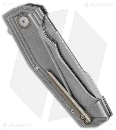 This Larius model has a tumbled titanium handle and a stonewash finished Bohler M390 steel blade.
