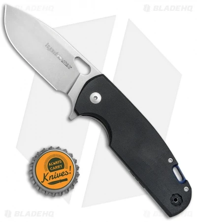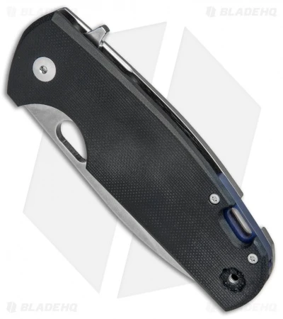 This model has a stonewash finished Bohler N690Co stainless steel blade with a practical drop point profile. The handle has a black G-10 front and a 6Al4V titanium frame lock with a CNC machined pocket clip along with a clever lanyard slot that’s integrated into the blue anodized titanium back spacer. Viper Knives has paired the Kyomi’s flipper with a ball-bearing pivot for delightfully smooth action.