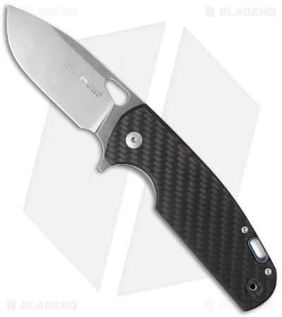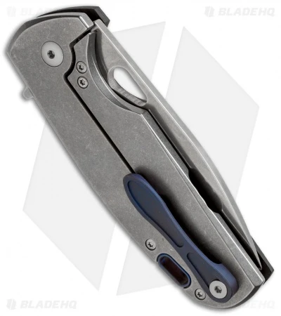 This model has a stonewashed Bohler N690Co stainless steel blade with a practical drop point profile. The handle has a carbon fiber front and a 6Al4V titanium frame lock with a CNC machined pocket clip along with a clever lanyard slot that’s integrated into the blue anodized titanium back spacer. Viper Knives has paired the Kyomi’s flipper with a ball-bearing pivot for delightfully smooth action.