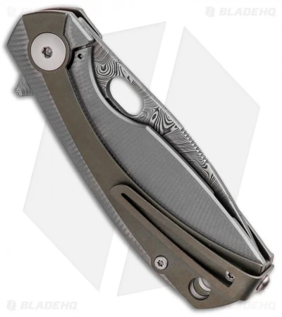 This Lille model sports a bead blasted titanium handle with a bronze anodized overlay and a Damascus blade. Viper introduced the Lille folder at BLADE Show 2017. This Jesper Voxnaes design is perfect for everyday carry and offers a distinct blade and handle profile. The drop point blade has a sharp tip and a deep belly for versatile cutting performance. It’s built with a slim design that fits perfectly in the hand or pocket. A reversible pocket clip finishes off the impressive EDC design.